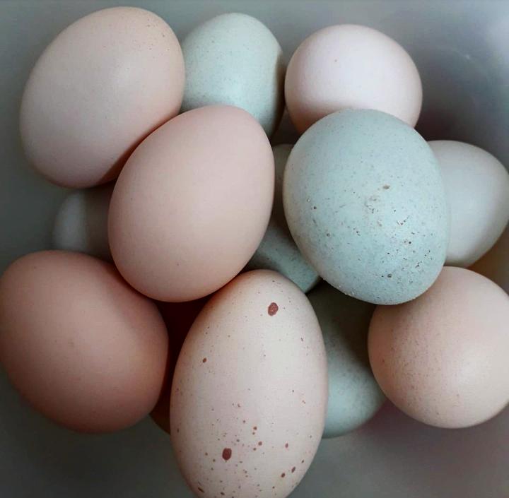 Los huevos azules son típicos en las gallinas araucana, originarias del sur de Chile y Argentina. La explicación del color de sus huevos reside en una de las enzimas que crea este animal y que después cambia la hemogoblina por biliverdina, pigmento que se aglomera en la cáscara mientras se desarrolla el huevo y que finalmente es el responsable de dicho color, que puede cambiar más hacia el azul o hacia el verde según el tipo.