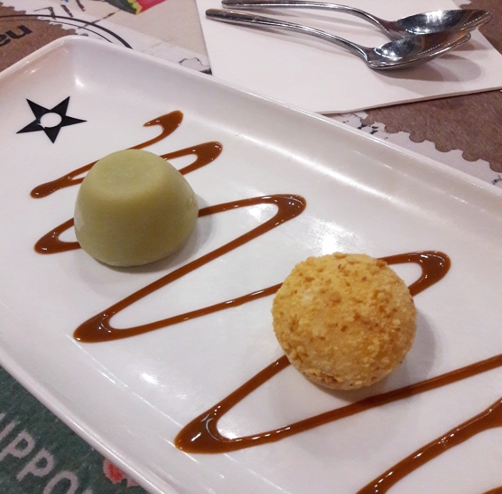 No podemos olvidar el postre, y muchísimo menos unos mochis tan exquisitos como los que nos trajeron para culminar la cena. Se sirven dos por ración y los pedimos de mango, yuzu (cítrico oriental muy parecido al limón), cheesecake y té verde. Si tuviera que hacer una calificar por sabores, el orden sería el siguiente: té verde, cheesecake, yuzu y mango.