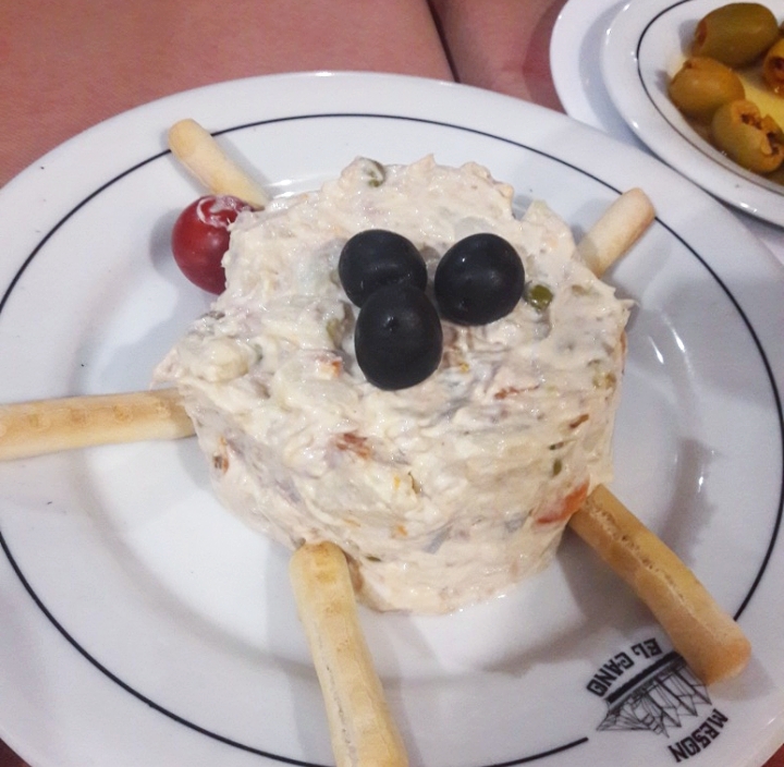 Esta vez fuimos cuatro para cenar y pedimos raciones individuales y una ensaladilla rusa para el centro. He de confesar que hicimos una especie de «truquillo», ya que la ensaladilla formaba parte del menú de doce euros pero decidimos ponerla al medio para compartirla.