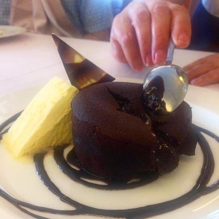 De postre pedimos coulant de chocolate y tarta de queso, también de elaboración propia. Estupendamente preparados y presentados.