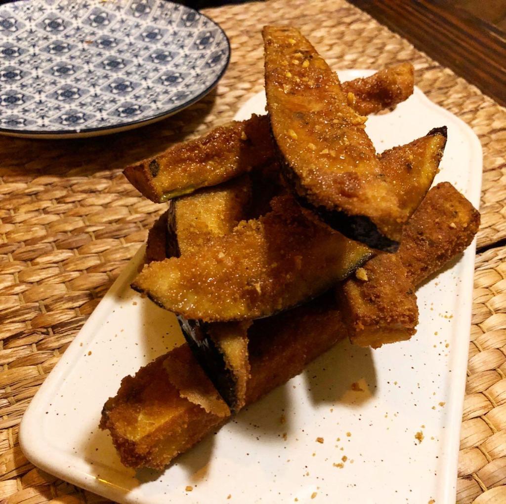Para comenzar, como entrantes nos decidimos por unas deliciosas berenjenas a la miel cubiertas de una fina capa de kikos que para nada estaban aceitosas. Su sabor era dulce, muy suave y nada empalagoso.
