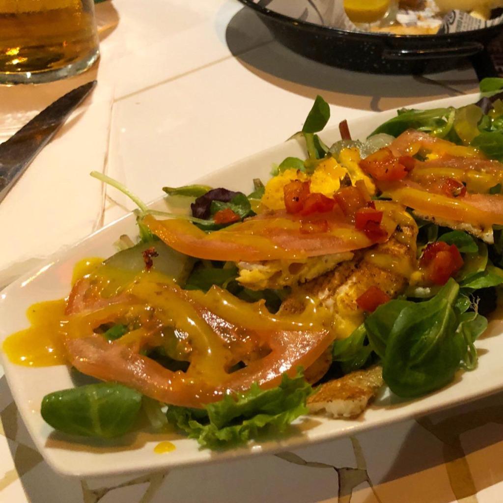 Por otro lado, una ensalada «personalizada», porque tú eliges qué ingredientes quieres que lleve, con huevo, tomate, mix de brotes frescos, pepinillo, pimiento… el veredicto de mi amiga fue “es comerse una hamburguesa pero sin el pan, es el mismo sabor, ¡increíble!”. Muy buena también.