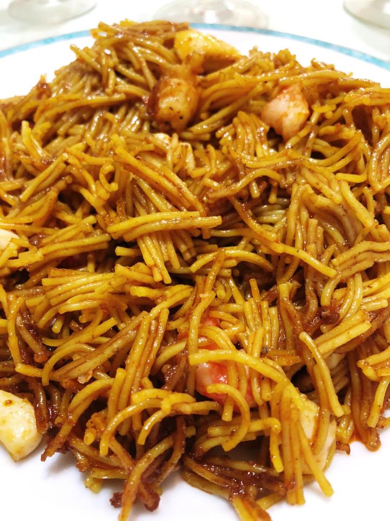 Pedimos fideuá de mariscos y croquetas (de boletus, jamón y chipirones en su tinta). El grosor de la fideuá era del tamaño de un dedo meñique, en una capa super fina se disponían armónicamente los fideos junto con las gambas, sepia y demás piezas de marisco fresco. El color era de un amarillo brillante y el sabor, inigualable, así como el tan agradable aroma que provenía del plato.